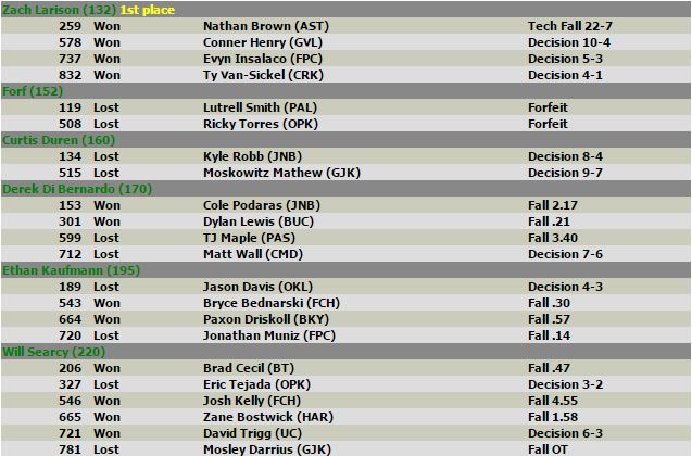 132: Zach Larison (7-0): Undefeated on the day with 3 pins